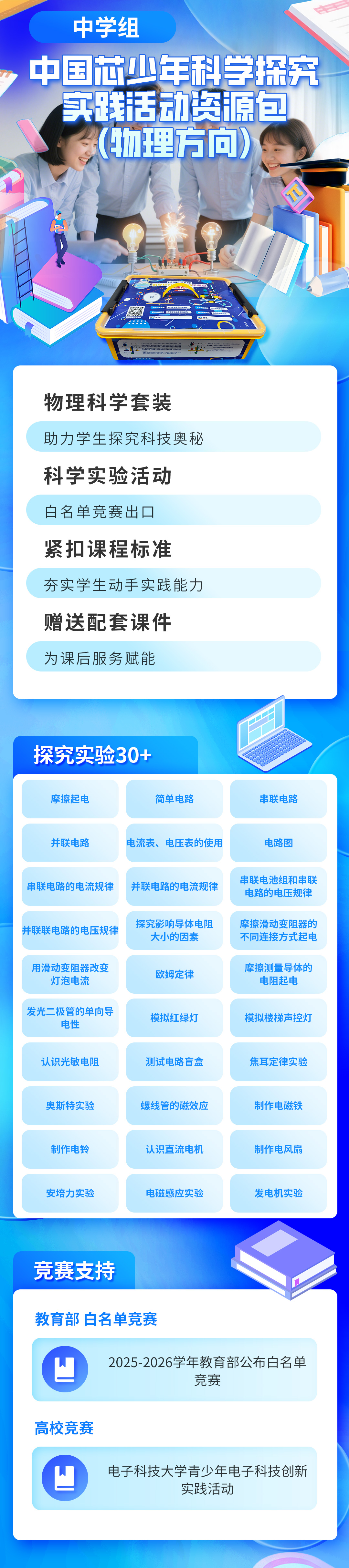 【中学组】中国芯少年科学探究实践活动资源包-物理方向(套件+课程)